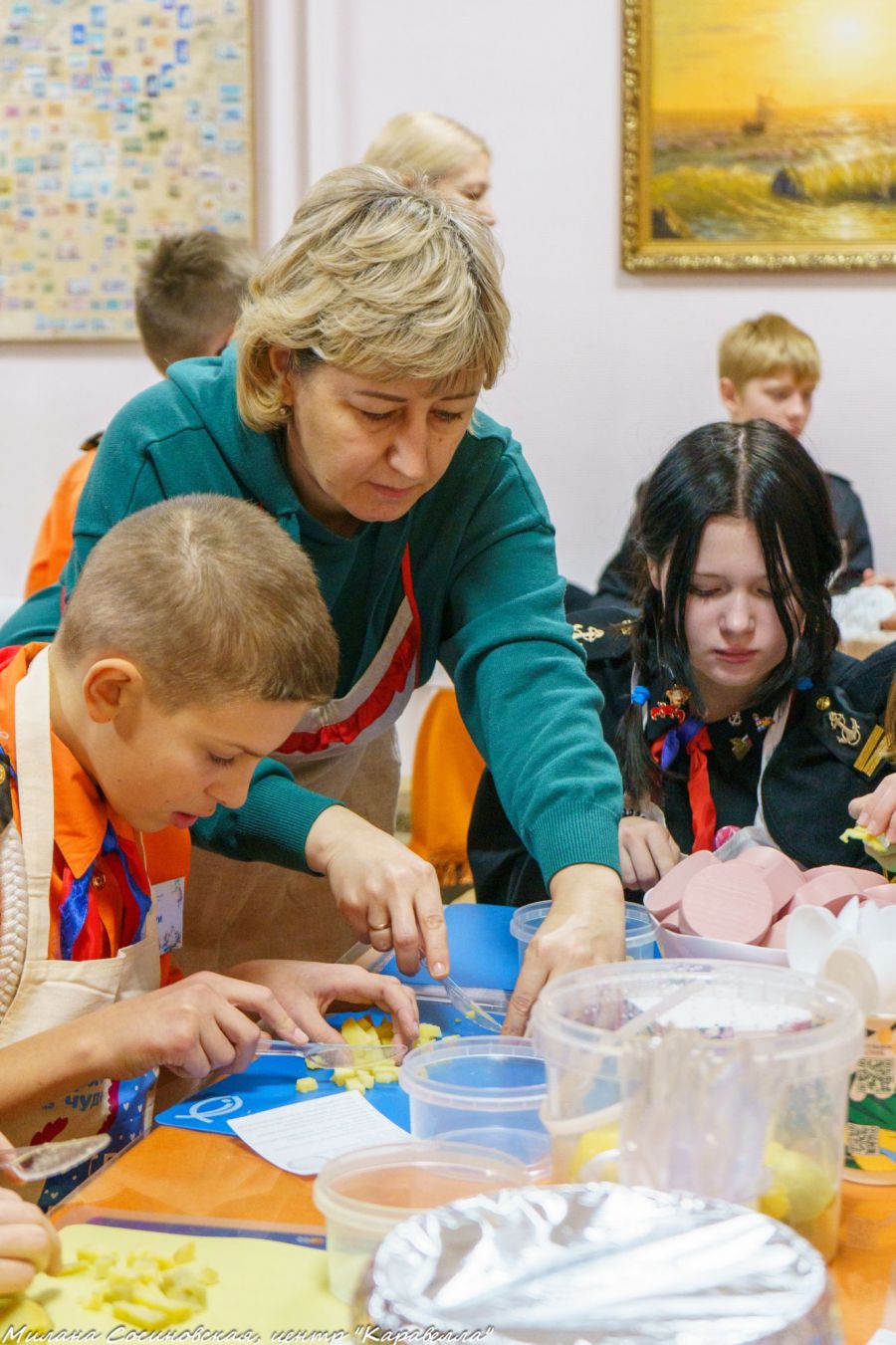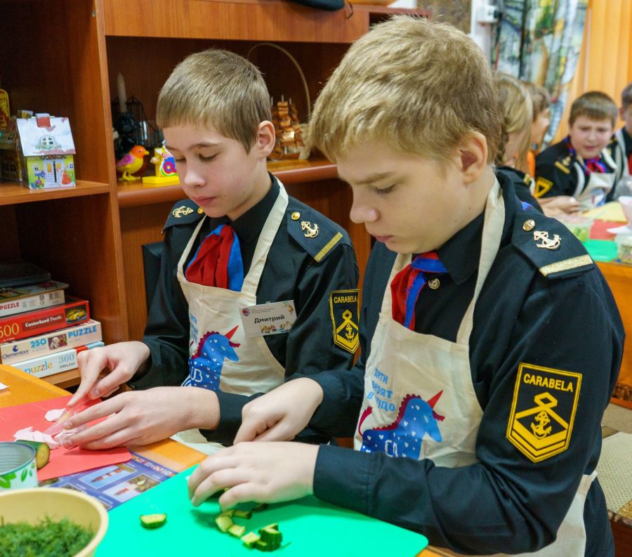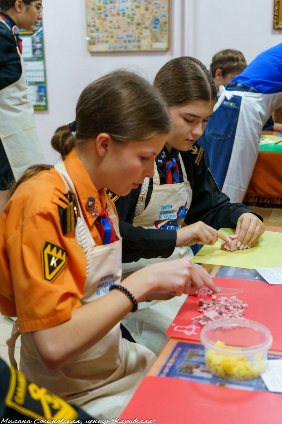 3 ноября в дополнение к основным занятиям нашей группе командиров и стажёров повезло попасть на уникальное кулинарное занятие. Его проводили Данилова Екатерина Владимировна и Хохрина Юлия Сергеевна – мамы наших ребят-каравелльцев. Мамы оказались очень веселые и активные. Они так увлеченно рассказали нам о нескольких блюдах разных народов, которые живут у нас на Урале. А потом мы смогли потренироваться в изготовлении вкусностей.