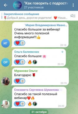 Участники получили запись встречи и полезные материалы для дальнейшего самостоятельного изучения темы и общения с подростками.