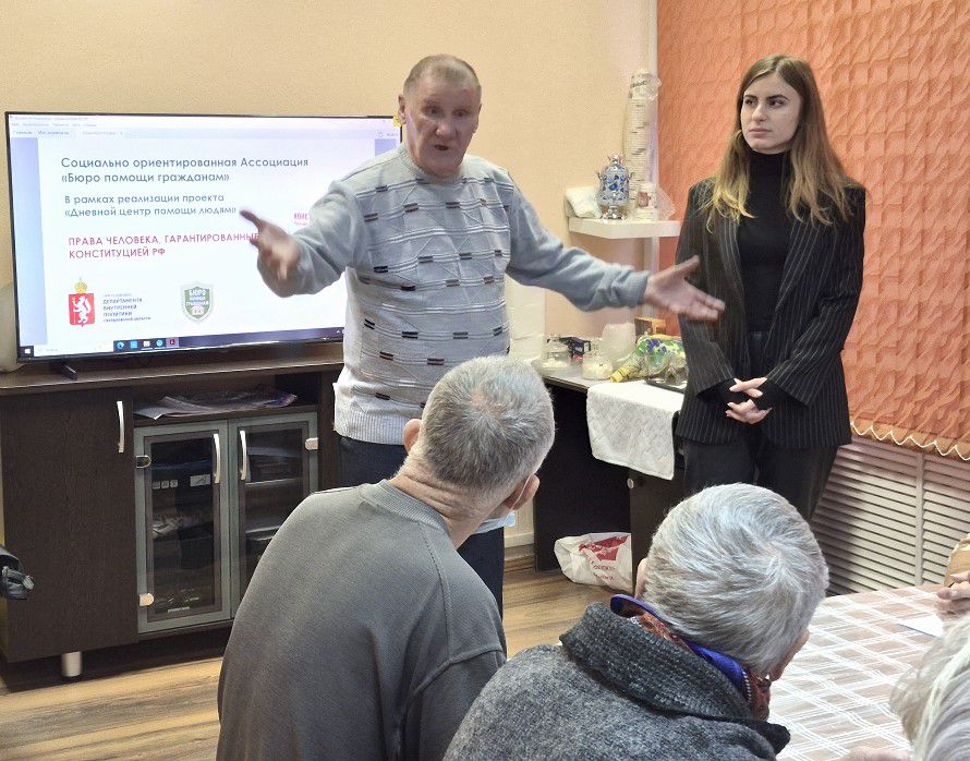 Руководитель организации Юрий Потапенко и юрист постарались донести до всех участников важную и очень полезную информацию о правах человека, чтобы уметь их применять в повседневной жизни, а также напомнили и об их обязанностях. Как обычно, чтобы ничего не упустить на лекции, мы раздали нашим присутствующим блокноты и ручки, где они смогли записать всё необходимое для себя. Во время мероприятия особое внимание было уделено социально-экономическим правам наших подопечных. Все участники активно включились в разговор и рассказывали свои истории, когда их права были нарушены и какие действия они предприняли. Мероприятие проходило очень оживленно, было много вопросов и ответов. По завершению организаторы провели небольшую викторину для всех участников, где им было предложено разобраться в предложенных ситуациях и определить в каких случаях были нарушены права и какие именно. С этим заданием все справились, хотя и во время обсуждения возникали противоречивые мнения.