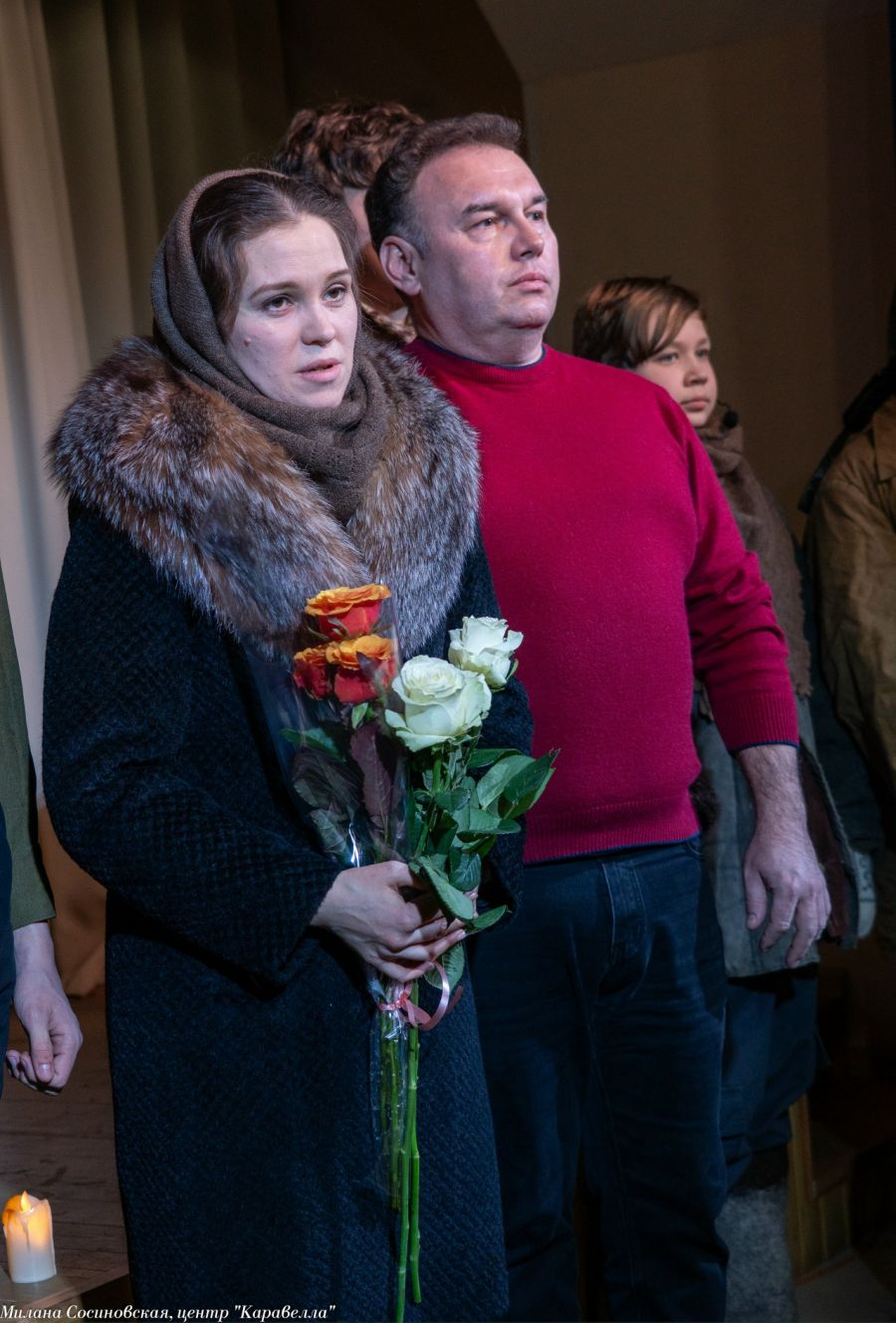 Очень тронул всех присутствующих завершающий аккорд – ребята и взрослые, на финальных словах, вынесли и зажгли свечи, как символ памяти о погибших. А зрители в зале вставали с мест и благодарили создателей словами и искренними аплодисментами. А режиссеру за труд и великолепную игру подарили цветы.