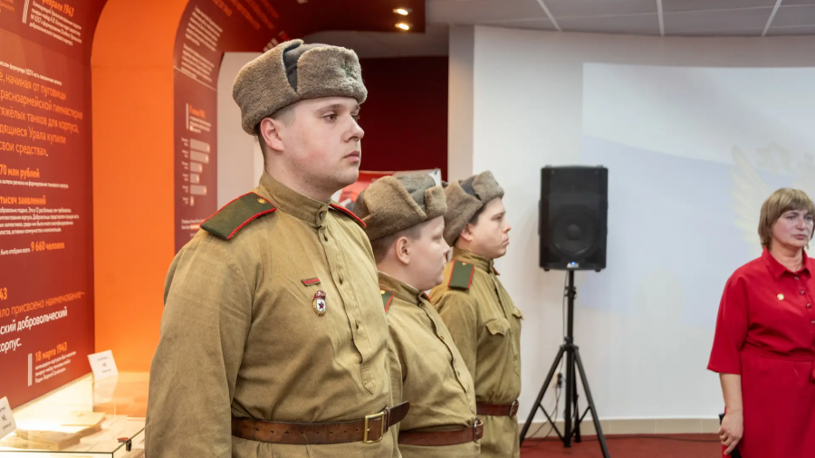 Продолжением памятной даты стало торжественное мероприятие в Центре сохранения истории народного подвига по формированию Уральского добровольческого танкового корпуса. Гостей, среди которых были ветераны УДТК, представители Министерства образования, Департамента внутренней политики, Департамента молодёжной политики, а также активисты «Движения Первых», встречали председатель Совета ветеранов СООО ветеранов Уральского Добровольческого танкового корпуса Борис Михайлович Ильиных, директор ГАПОУ СО «Колледж управления и сервиса «Стиль» Елена Владимировна Эльснер и руководитель Центра истории УДТК Ирина Александровна Владыкина. В организации и проведении мероприятия активное участие приняли члены волонтёрского отряда колледжа.