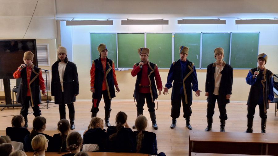 Завершил концертную программу своим зажигательным выступлением лауреат международных и всероссийских конкурсов, казачий ансамбль «Братчина» под руководством доцента Оксаны Алексеевны Москаленко, исполнив песню Н. Емелина «Ой, что-то мы засиделись, братцы».