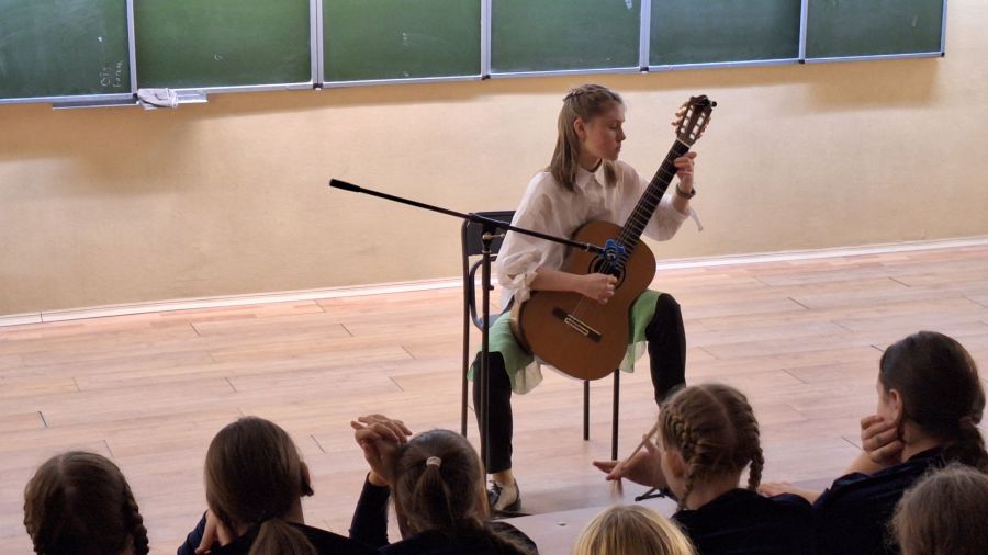 Лидия Еркина покорила зал игрой на гитаре, представив композицию Луиса Аллена «Огонь сердца».