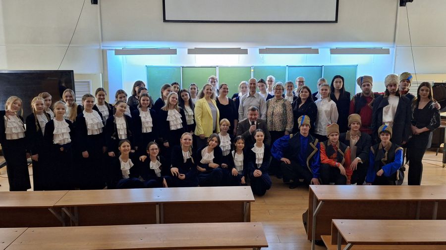 Торжественную часть открыл юный активист Движения, ученик 4 класса школы № 72 им. Н.Кузнецова, региональный победитель творческого конкурса «Бессмертного полка России» памяти В.Ланового «Пробуждая сердца» Ярослав Ежов, проникновенно прочитавший стихотворение «Ода музыке» выдающегося уральского музыканта, поэта и композитора Владимира Шильдта. В своём вступительном слове Павел Ежов подчеркнул глубокую миссию встречи: «Мы рады видеть вас, юные артисты Классик-хора «Аврора», в стенах главного педагогического вуза на Урале. Вы – гордость не только нашего города, но и всей страны. Эта встреча уникальна: впервые прекраснейшие произведения, составляющие наследие российской и зарубежной музыки, будут исполнены в совместном концерте артистов детской хоровой школы и студентов Института искусств». Эти слова стали лейтмотивом всего вечера.