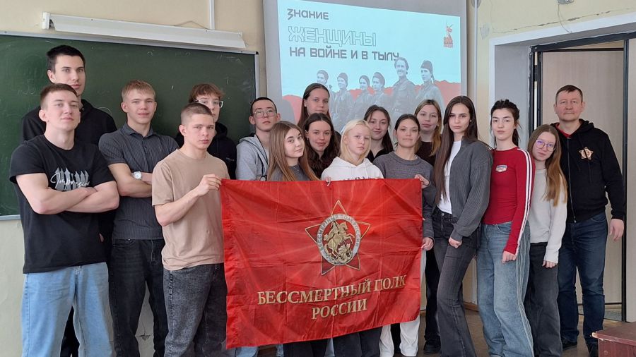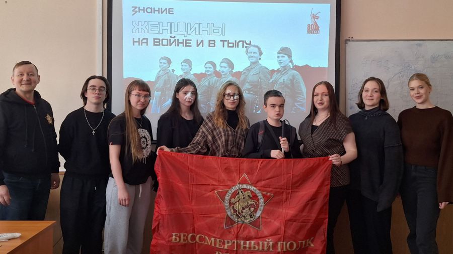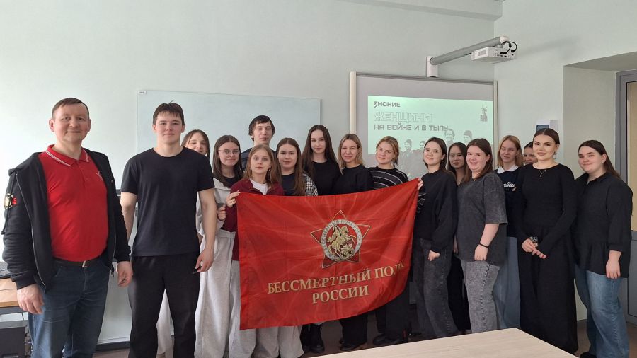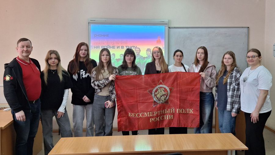 Завершались встречи тёплыми поздравлениями студенток с Международным женским днём. Лектор пожелал будущим педагогам крепкого здоровья, вдохновения и уверенности в завтрашнем дне, отметив, что именно женщинам во все времена удавалось сохранять человечность даже в самых суровых условиях. В финале участники сделали памятное фото с флагом «Бессмертного полка России» — символом преемственности поколений и благодарности героям.