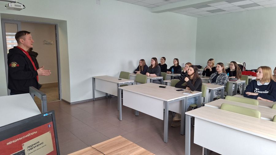 В ходе лекций студенты узнали о героическом вкладе женщин в Победу в Великой Отечественной войне: о «ночных ведьмах», женщинах-снайперах, связистках, медиках и подпольщицах. Особое внимание уделялось судьбам легендарных героинь — Людмилы Павличенко, Марины Расковой, Екатерины Зеленко, Зинаиды Портновой. Павел Юрьевич подчеркнул, что «полмиллиона героинь» — это не просто цифра, а 490 тысяч женщин, которые выбрали путь служения Родине, стояли плечом к плечу с мужчинами и доказали: женщина может всё, когда на кону судьба страны.