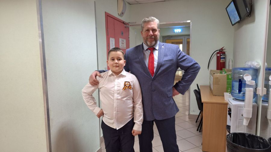 На площадке юный патриот сфотографировался с Артёмом Николаевым — директором Департамента молодёжной политики и международных связей администрации Екатеринбурга, а также с активистами регионального отделения «Бессмертного полка России».
