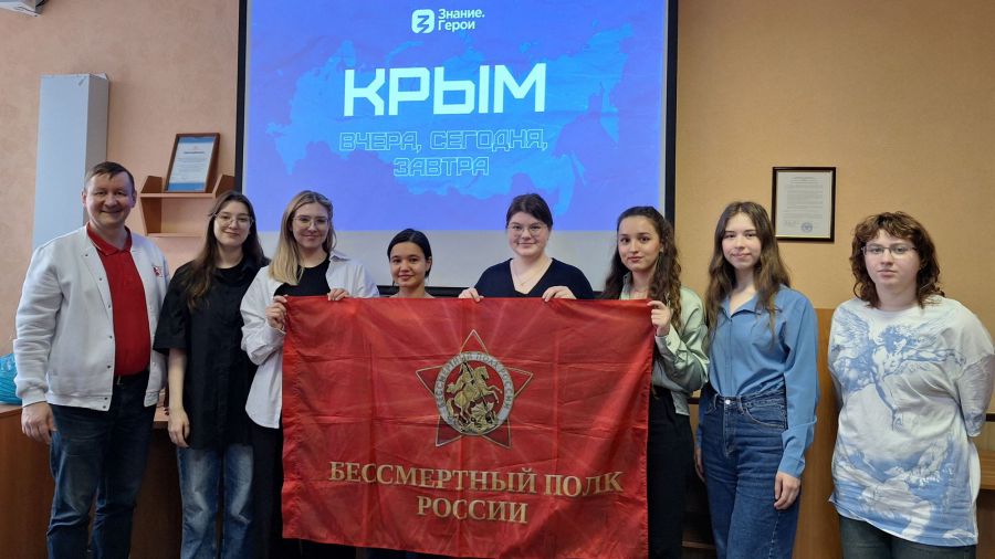 Студенты поблагодарили лектора за содержательную и эмоциональную встречу. В завершение участники сделали памятное фото с флагом «Бессмертного полка России» — символом исторической памяти, преемственности поколений и единства народа.