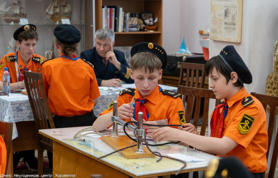 Этот основной учебный курс в нашем Центре ведёт командор Лариса Александровна Крапивина, поэтому всё проходит очень серьёзно и ответственно. В силу большой её занятости помогают Ларисе Александровне все педагоги. Что-то мы изучаем на яхтостроении, отдельно идет такелаж, где мы тренируемся завязывать морские узлы, отдельно изучаем курс по медицине и правилам безопасности.
