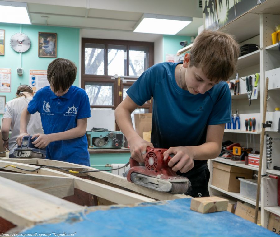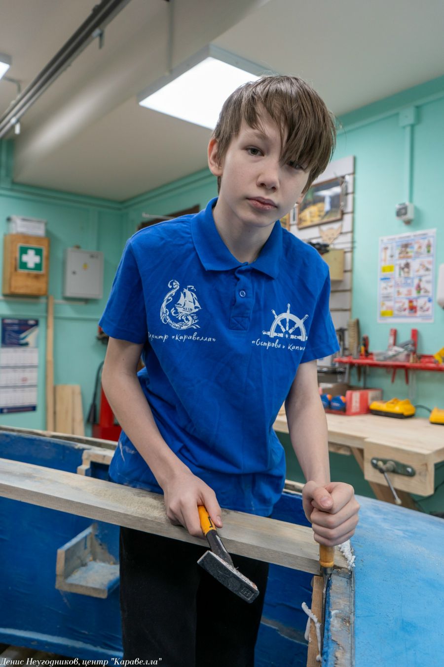 Шла работа и в мастерской. Вместе с Андреем Владимировичем Копыловым группа каравелльцев завершает капитальный ремонт днища нашей большой яхты «Гек Финн». В рекордно короткий срок - 3 недели - сделана почти ювелирная плотницкая работа: снята старая обшивка, проведена замена части киля и стрингеров в районе миделя, изготовлен и установлен новый швертовый колодец, удалена вся гниль и старая краска.