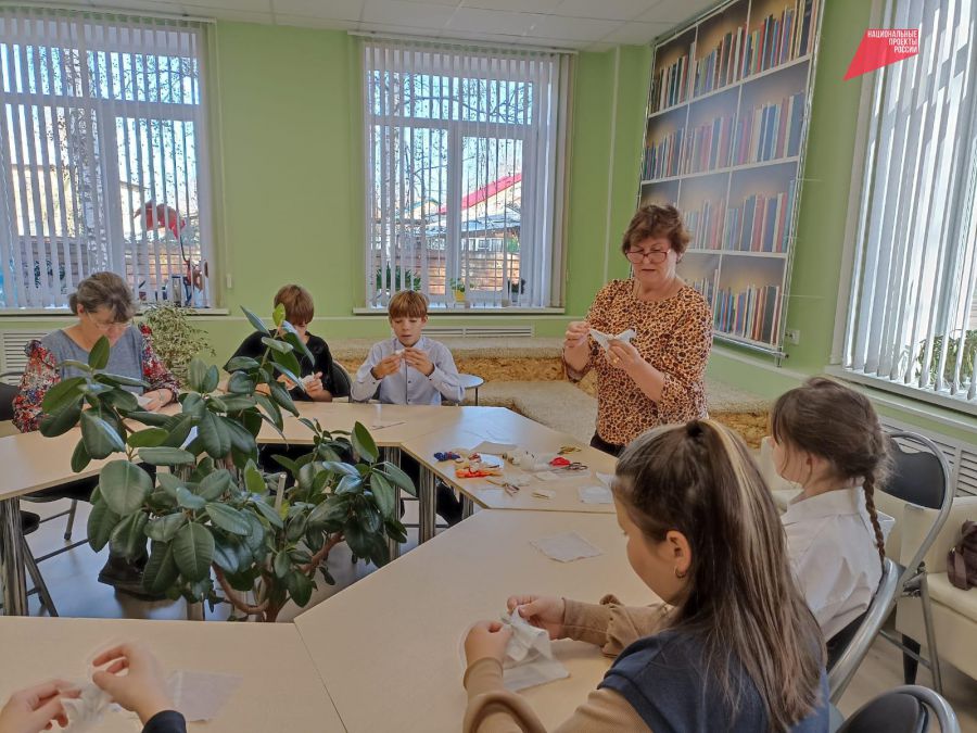 В Центральной городской библиотеке состоялась творческая встреча с участием учащихся Центра образования №7 (классный руководитель Федосова Ольга Владимировна) и мастерицей клуба «Девушки-Семиделушки» Просвиряковой Татьяной Николаевной.