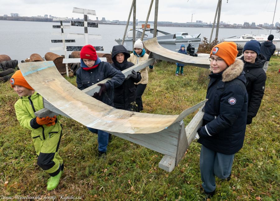 В результате мы смогли убрать на зимнее хранение под крышу в эллинг Екатеринбургской морской школы ДОСААФ два корпуса яхт класса "летучий голландец", передвинули часть мебели в "экипажной" и осторожно занесли туда командорский "Прогресс". Под финал смогли снять мачту и подготовить к консервации крейсер "Слава". Для тех, кто недавно отслеживает наши новости, рассказываю. Эта яхта построена в 2012 году и названа в честь командора Владислава Крапивина. Он сам был в числе первых рулевых, кто вводил её в эксплуатацию.