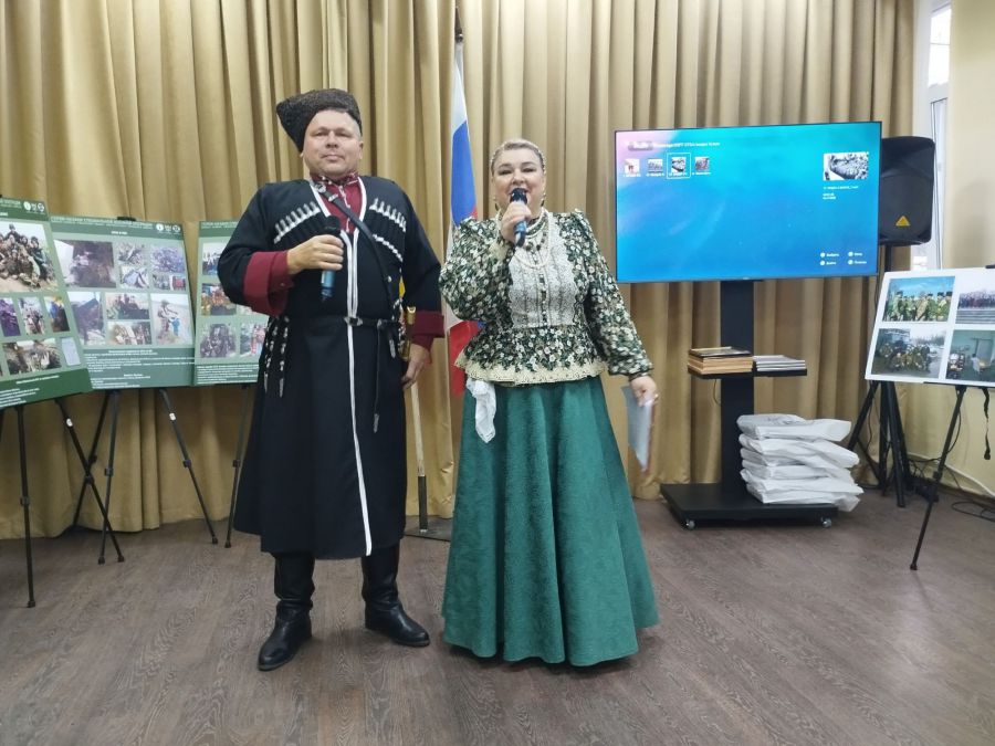 Для студентов и кадет учебных учреждений Верхней Пышма семейный дуэт "Беседа" Людмила и Олег Милюковы провели литературно-музыкальная встречу "Мы святой России служим", познакомили с выставкой документальных фото о казаках Черноморского казачьего войска.