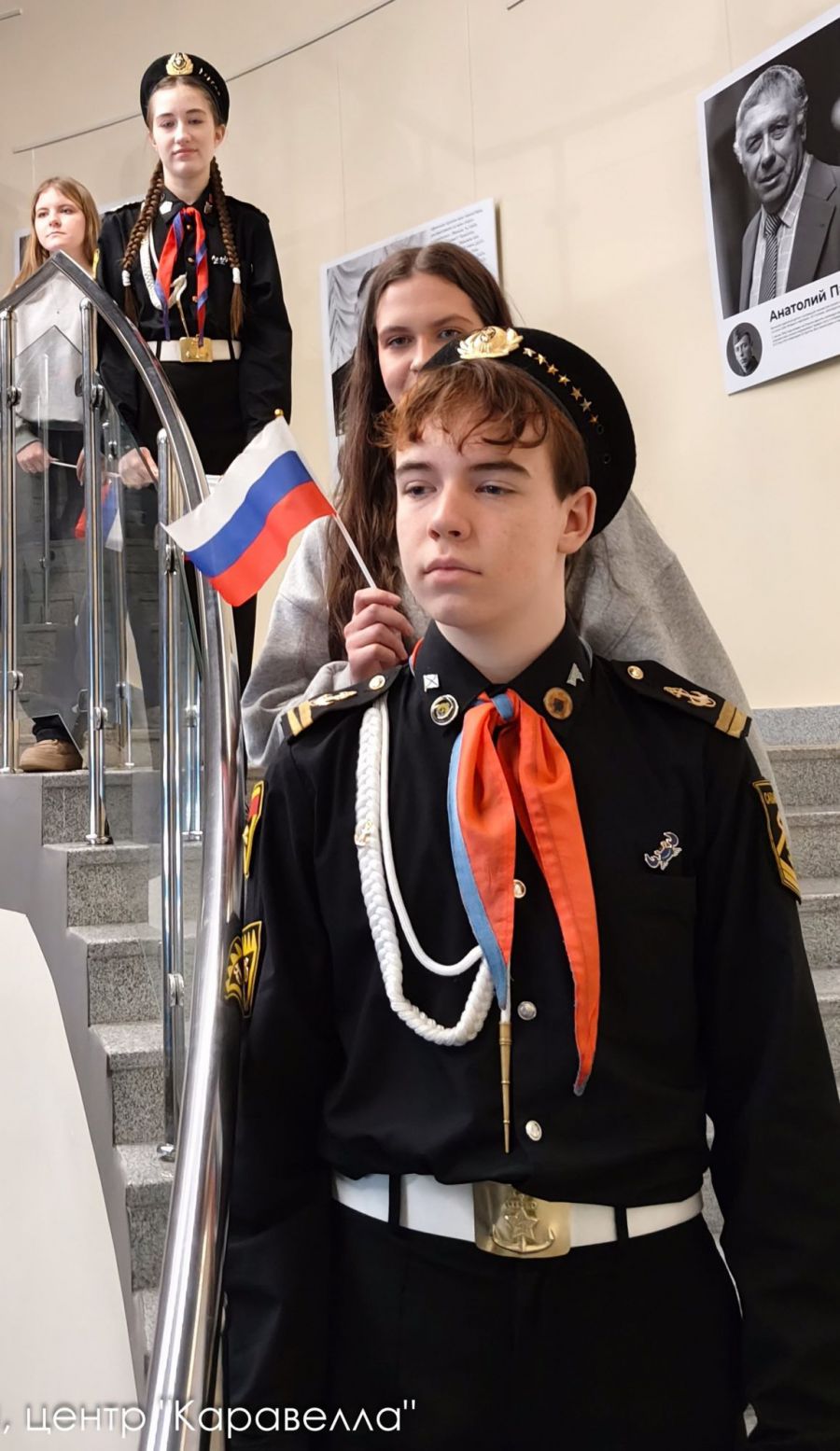 Началось всё ещё в пятницу, за день до мероприятия. Мы, представители центра гражданско-патриотического воспитания «Каравелла» (МБУ ДО «ЦВР «Социум»), а именно Володя Протасевич, Савелий Печёркин, Никита Колесниченко, Евсей Дмитриев, Саша Доможиров, Вика Кабакова, Ваня Привалов, Соня Лукичёва, Арсений Серебренников, Слава Любимов, Лёша Галимов и я (Матвей Антонов), флагман Дмитрий Андреевич Василика и командор Лариса Александровна Крапивина, а также ребята из «Юнармии», представители движения «Первые», ребята из народных творческих танцевальных и хоровых коллективов пришли на репетицию предстоящего важного события. Зачем понадобилась какая-то репетиция? Объясняю.